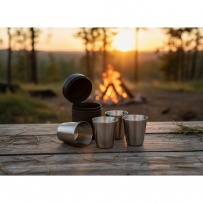 Set mit 4 Metallgläsern je 30 ml, Etui mit Reißverschluss aus PU-Leder