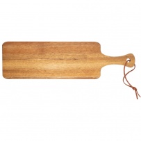 Deska do krojenia z rączką i sznurkiem, które umożliwiają wygodne przenoszenie, doskonale sprawdzi się jako element wyposażenia każdej kuchni, produkt wykonany z drewna akacjowego