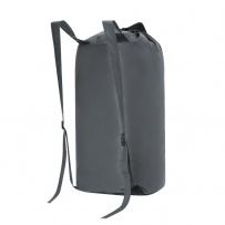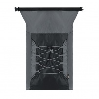 Foldable backpack made from durable RPET 210D and ripstop polyester. With loop closure on the main compartment, elastic cords, and adjustable shoulder straps.RPET material is made from recycled plastic to promote the reuse of plastic waste and help the sustainability of the planet.