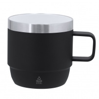 Cup made from recycled stainless steel with double wall and 180 ml capacity. With double wall for better and longer temperature retention and ceramic-coated interior, suitable for carbonated drinks. With recycled stainless steel label.Stainless steel is one of the most demanded materials and can be found almost everywhere, from daily use products to large constructions. With countless properties, including durability and a high degree of reuse, making it a highly valued alternative in sustainability solutions. Properly treated, it allows for obtaining new resources of infinite use.