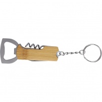 Bamboo keyring 3 in 1, bottle opener, penknife, corkscrew, product packed in a brown box, product packed in brown carton box, made of bamboo and metal