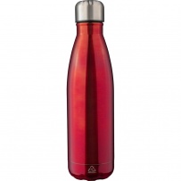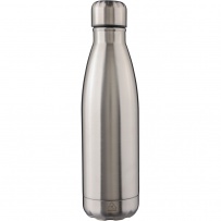 Thermo bottle 500 ml, features recycled stainless steel double walls with vacuum insulation that slow down the release of temperature to the surroundings, functioning like a thermos, includes recycled stainless steel icon on the product, packed in brown carton box, keeps beverages hot for up to 20 hours +leakproof