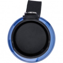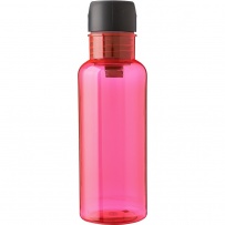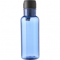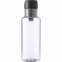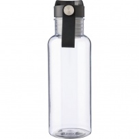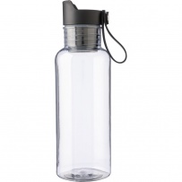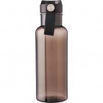 Sports bottle 600 ml with a black lid, spout that opens and closes by pressing a button, handle for easy carrying, product made from RPET, PP, silicone and stainless steel