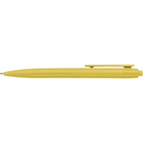 Ball pen with large rectangular clip, writes in black, includes RABS icon on the product, product made from recycled ABS