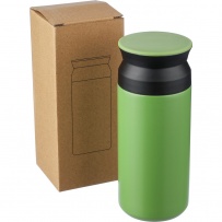 Kubek termiczny 350 ml, posiada podwójne ścianki ze stali nierdzewnej z próżnią między ściankami, co spowalnia oddawanie temperatury na zewnątrz, zachowując funkcje termosu, zapakowany w brązowy kartonik, produkt wykonany ze stali nierdzewnej i PP, utrzymuje temperaturę napojów gorących do 20 godzin +leakproof