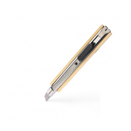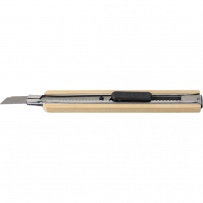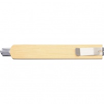 Bambusowy nóż do tapet, klips za pomocą którego chowa się ostrze, produkt wykonany ze stali nierdzewnej (ostrze) i bambusa (trzon)