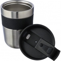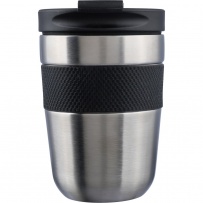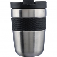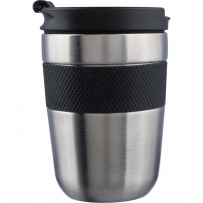 Thermo mug 300 ml, features stainless steel double walls with vacuum insulation that slow down the release of temperature to the surroundings, functioning like a thermos, silicone grip for more comfortable handling, packed in brown carton box, product made from stainless steel, silicone, PP, ??polyester