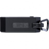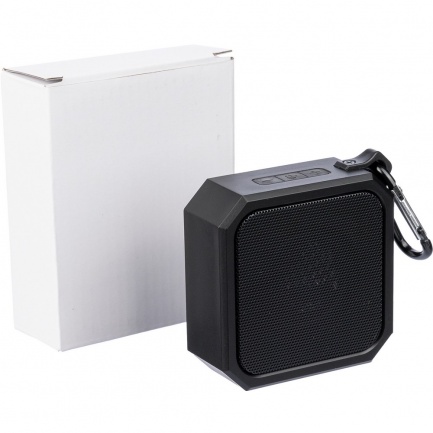Wireless speaker with carabiner clip for attaching, IPX4 which means protection against light water splashes for a minute, output power 3 W, DC 5 V input, built-in 300 mAh battery, works at a distance of 15-20 meters from the signal source, signal to noise ratio 87 dB , 100Hz-20K Hz frequency, includes 50 cm length type C charging cable, 2 hours time games, BT 5.2, packed in a brown carton box, product made from ABS