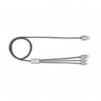 Charging and synchronization cable BrandCharger Trident 2+ with a lifespan of over 12,000 bends making it six times stronger than standard cables, built with an aluminium base and a reinforced nylon braided jacket, compatible with USB-A, type-C and compatible with iOS device, product made from nylon, aluminium and RPET