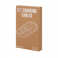 Set of charging cables made from recycled ABS (RABS). Includes: - Wireless charging for smartwatch. - Multifunction cable with USB, Type-C, and Lightning heads, compatible with a wide variety of devices and capable of data transfer. - SIM ejector pin, with slots for storage of Nano SIM and TF cards. RABS is a highly recyclable plastic with great strength and multiple applications, making it an eco-friendly solution. With RCS certification, which guarantees its recycled origin and with an engraved RABS logo.