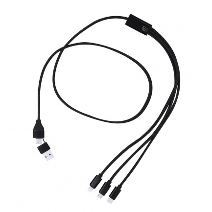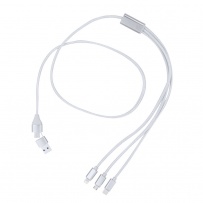 Charging cable made from Recycled Aluminum. With dual input Type C/USB and Type C, Lightning, and Micro USB outputs. Includes a Recycled Aluminum label.Recycled Aluminum is a material with almost infinite recycling possibilities, without losing its original properties and consuming less energy in the process.GRS (Global Recycled Standard) certification, which guarantees the recycled origin of the material used to manufacture the product.Micro USB, Type C, and Lightning connection 5V DC 2.4A.