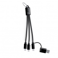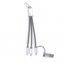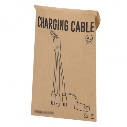 Charging cable made from Recycled Aluminum. With dual input Type C/USB and Type C, Lightning, and Micro USB outputs. Includes a Recycled Aluminum label.Recycled Aluminum is a material with almost infinite recycling possibilities, without losing its original properties and consuming less energy in the process.GRS (Global Recycled Standard) certification, which guarantees the recycled origin of the material used to manufacture the product.Micro USB, Type C, and Lightning connection 5V DC 2.4A.