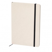Note block with rigid covers made of recycled milk cartons. Includes 80 natural colored lined sheets, with an elastic band and colored bookmark. Includes Recycled Milk Carton designation on the back cover and interior sheets.Milk cartons are mostly made of cardboard and aluminum. During their recycling process, different materials from the container are separated for reuse and new use, thus contributing to the infinite journey of the circular economy. This material is characterized by its high recyclability, as well as its lightness and strength.