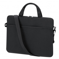 Soft shell laptop sleeve, with padded main compartment for devices up to 14 inches. Designed with double pull zipper closure and a practical external quick access pocket. Easy to transport thanks to its hand straps, adjustable shoulder strap, and rear strap for trolley.