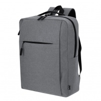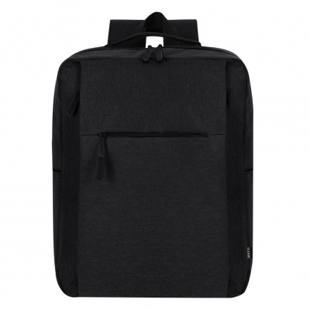 Backpack made from soft RPET 600D polyester. With a main pocket with double pull zipper closure. Interior pocket for laptops up to 15 inches. Includes two front pockets with invisible zipper closures and side pockets. Padded adjustable back and straps. Includes strap for trolley or suitcase adjustment, ideal for travel. With RPET label on the tag. The RPET material is made from recycled plastic, promoting the reuse of plastic waste and helping the planet's sustainability.