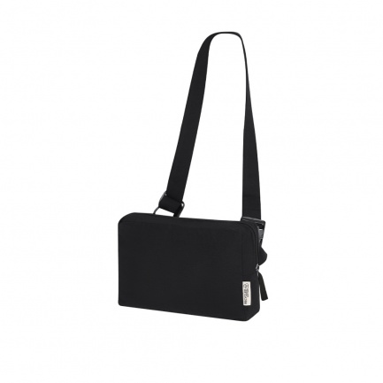 Saszetka zapinana w pasie z główną kieszenią i dodatkową kieszenią z zewnątrz, produkt wykonany z bawełny z recyklingu 300 g/m2
