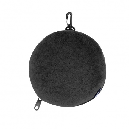 Pillow with eye mask ideal for travel made from soft RPET material. Includes an adaptable eye mask with two matching elastic bands for greater comfort and rest during travel. Features a fluffy foldable headrest with zipper closure for easy storage. Moreover, it has a practical external pocket and a black plastic carabiner for convenient transport. This accessory combines functionality, compact design, and is perfect for your travels. The RPET material is made from recycled plastic, promoting the reuse of plastic waste and helping to sustain the planet.