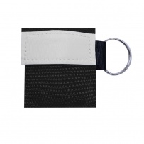 CPR mask keychain, compact format in a small 600D polyester bag with velcro closure and metal ring to become a keychain.