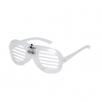 Glowing glasses with LEDs, transparent frame, and net lenses, ideal for parties and celebrations. They incorporate 6 integrated LED lights powered by button batteries (included), with fixed or flashing lighting options. They feature a practical on/off button.