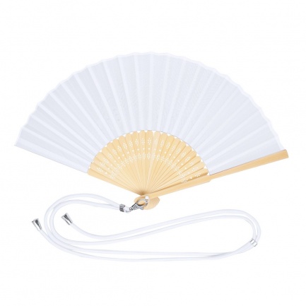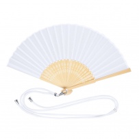 Fan made of durable 190T polyester fabric and flexible bamboo sticks. Includes an adjustable cord matching the fabric and a practical metal carabiner for easy transport.Materials like bamboo promote the use of natural raw materials, reducing polluting emissions. Additionally, bamboo comes from a highly resilient and versatile plant, growing and regenerating quickly, making it an excellent alternative to traditional wood use.