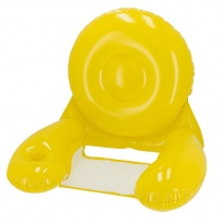 Original armchair with armrests and backrest made of solid color and glossy PVC. With sturdy mesh seating of 56x32 cm in white polyester. With special folding for easy printing.