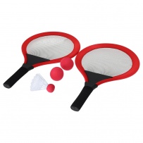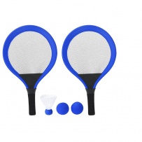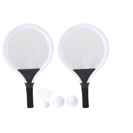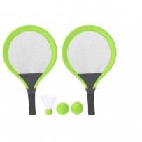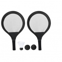 Game set with rackets. Includes: - 2 rackets with ergonomic handle and padded edges, designed for a comfortable and secure grip during play. - 2 matching balls made of EVA material. - 1 shuttlecock. Ideal for enjoying outdoors, whether at the beach, park, or garden.