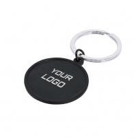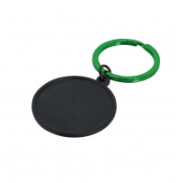 Keychain made of aluminum with a round design in black. Ideal for laser engraving with a color finish on both sides of the keychain with a mirror effect. Includes a matching metal ring for an elegant result.