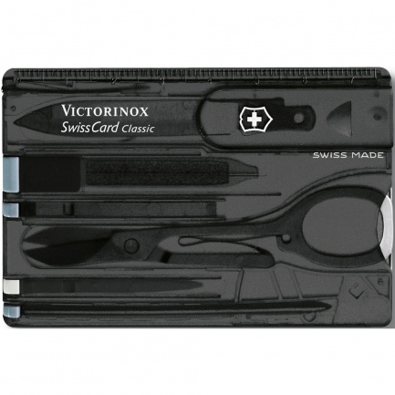 Multitool Victorinox SwissCard Classic, including: letter opener, tweezers, scissors, nail file, toothpick, ballpen and steel pin, packaged in giftbox, product made from stainless steel and plastic