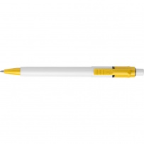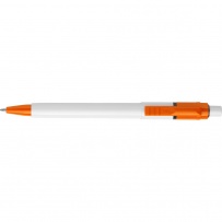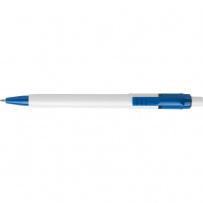 Długopis ABS Stilolinea Baron, biała końcówka i kolorowy klips, wkład w niebieskim kolorze, zawiera tusz German Dokumental Ink, produkt wykonany z ABS i plastiku