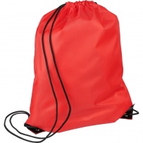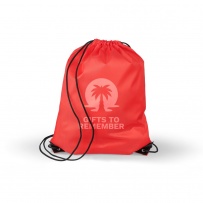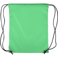 Drawstring bag, black nylon cord on each side, a pull-cord closure, one inner compartment, capacity: 5L, carrying capacity: 7 kg, product made from polyester 210D with two black PU corners on the front and internal sewing