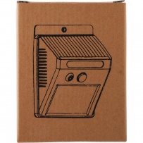 Solar power wall light with 20-COB LED, features a night sensor (CDS) and motion sensor (PIR), includes an 800 mAh battery capacity, includes a charging cable, IP44 rating, constant or flashing light functions, individually packaged in a brown cardboard box, product made from PP