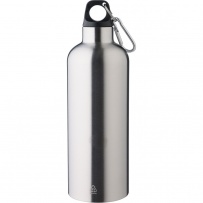 Butelka termiczna 500 ml, posiada podwójne ścianki, które spowalniają oddawanie temperatury na zewnątrz, utrzymuje temperaturę napojów: ciepłych do 8 godzin, zimnych do 12 godzin, posiada matowe wykończenie (z wyjątkiem koloru -32), ikona recyklingu na produkcie, nie nadaje się do mycia w zmywarce, pakowana pojedynczo w brązowe kartonowe pudełko, produkt wykonany stali nierdzewnej z recyklingu, nakrętka z PP, aluminiowy karabińczyk