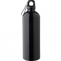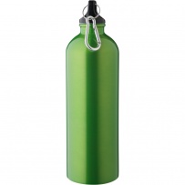 Butelka sportowa 750ml, jednowarstwowa, ikona recyklingu na produkcie, nie nadaje się do mycia w zmywarce, produkt wykonany ze stali nierdzewnej z recyklingu, nakrętka z PP, srebrny aluminiowy karabińczyk