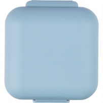 Pill box with 5 individual compartments, each with its own lid, features a clip closure for secure storage.