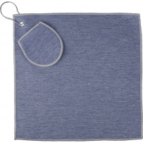 Ręcznik golfowy, z wbudowaną kieszonką na piłkę golfową, wyposażony w metalowy haczyk umożliwiający łatwe przymocowanie do torby, wewnątrz znajduje się ikona RPET na metce, można prać w pralce (na zimno), produkt wykonany z RPET