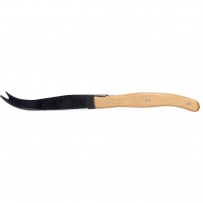 Set de charcuterie dans une pochette fermée par crochet et boucle, comprenant trois couteaux en acier inoxydable avec des manches en bois, comprend l'icône RPET sur une étiquette ? l'intérieur, sans danger pour les aliments, emballé individuellement dans une boîte en carton brun, produit fabriqué en RPET