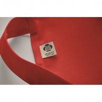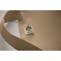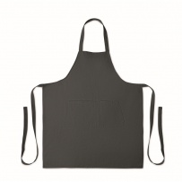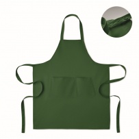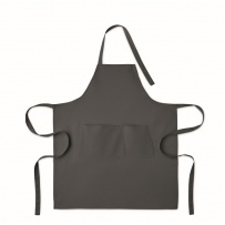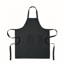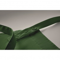 Fartuch z 1 dużą kieszenią z przodu i 2 przegrodami z bawełny organicznej 240 gr/m2. Regulowane zapięcie na guzik na pasku na szyję.