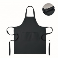Tablier ? bavette réglable avec 1 grande poche frontale ? 2 compartiments en coton biologique 240 gr/m2. Avec bouton de réglage sur le tour de cou.