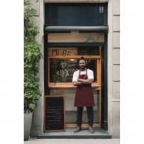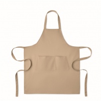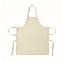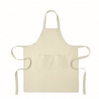 Adjustable bib apron with 1 large front pocket with 2 compartments in 240 gr/m2 organic cotton. With adjustable button on the neck strap.