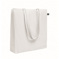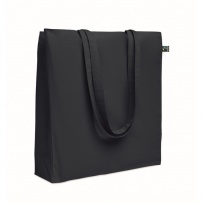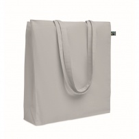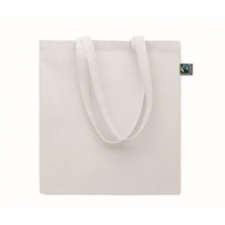 Shopping bag with long handles and gusset made of Fairtrade cotton. 180 gr/m2.