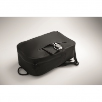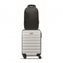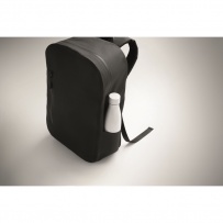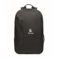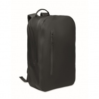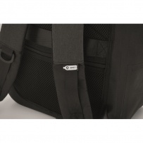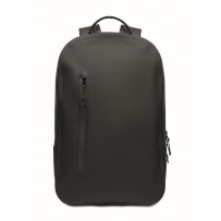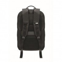 Laptop backpack 16'' in 300D RPET polyester and 210D polyester lining. Water-resistant fabric. Hidden zippered pocket and trolley holder on the back. Padded internal laptop compartment, mesh back and shoulder strap.