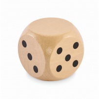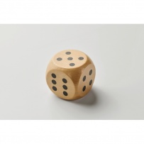 Dice in schima wood. 5cm diameter. This item can only be delivered in multiples of inner packaging being 25 pcs. 1 side reserved for printing. FSC-certified | FSC 100%, W15.2, FSC-C213206