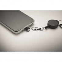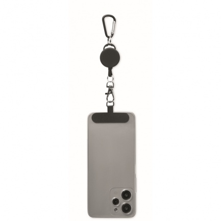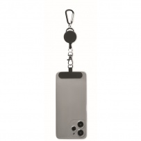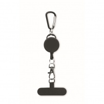 Retractable phone holder and or badge holder in ABS with aluminium carabiner. The carabiner is not for climbing (non-professional use).