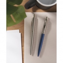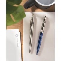 Druckkugelschreiber mit Korpus aus recyceltem Edelstahl. Blaue Tinte. Lieferung in einer Schachtel.