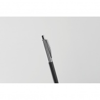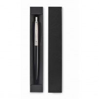 Przyciskany długopis z korpusem z recyklingowanej stali nierdzewnej. Niebieski tusz. Prezentowany w czarnym pudełku.