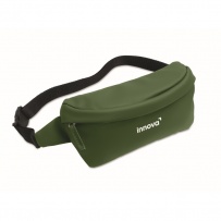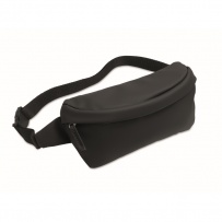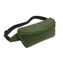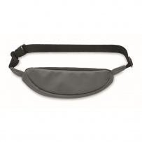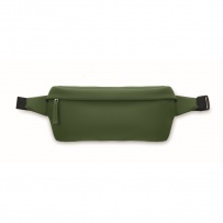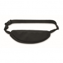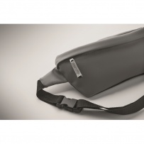 Waist bag with PU coated 600D RPET polyester, 210D RPET polyester lining and front zippered pocket.