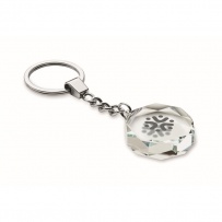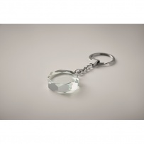 Porte-clés en verre rond biseauté. Présenté dans une boîte cadeau.