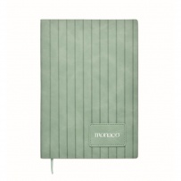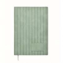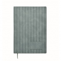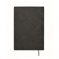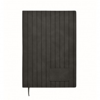DIN A5 Notizbuch mit geripptem Soft Cover aus 40% recyceltem Post Consumer Smokey PU und 60% PU mit PU Patch. 80 Blatt (160 Seiten) 70 g/m2 Recyclingpapier. Farblich passendes Lesebändchen.