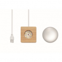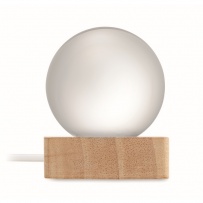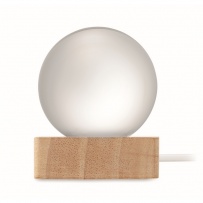 Boule de verre avec lumi?re LED (100 lumens) sur une base en bois d?hévéa. Comprend un câble de chargement USB (90 cm). FSC 100% | W18.8 | FSC-C213206