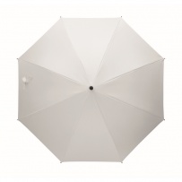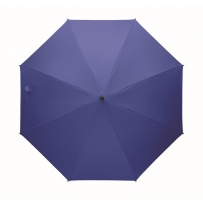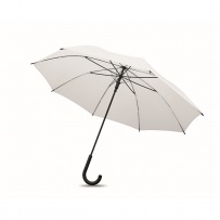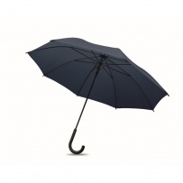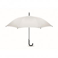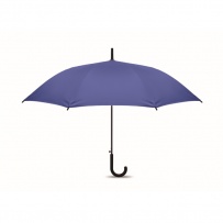 23'' Regenschirm aus 190T Pongee. Stock aus schwarz überzogenem Metall und Stangen aus Fiberglas. Krone und Spitzen aus Kunststoff. Gebogener Griff aus gummiertem PP. Automatische Öffnung, manuelle Schließung.